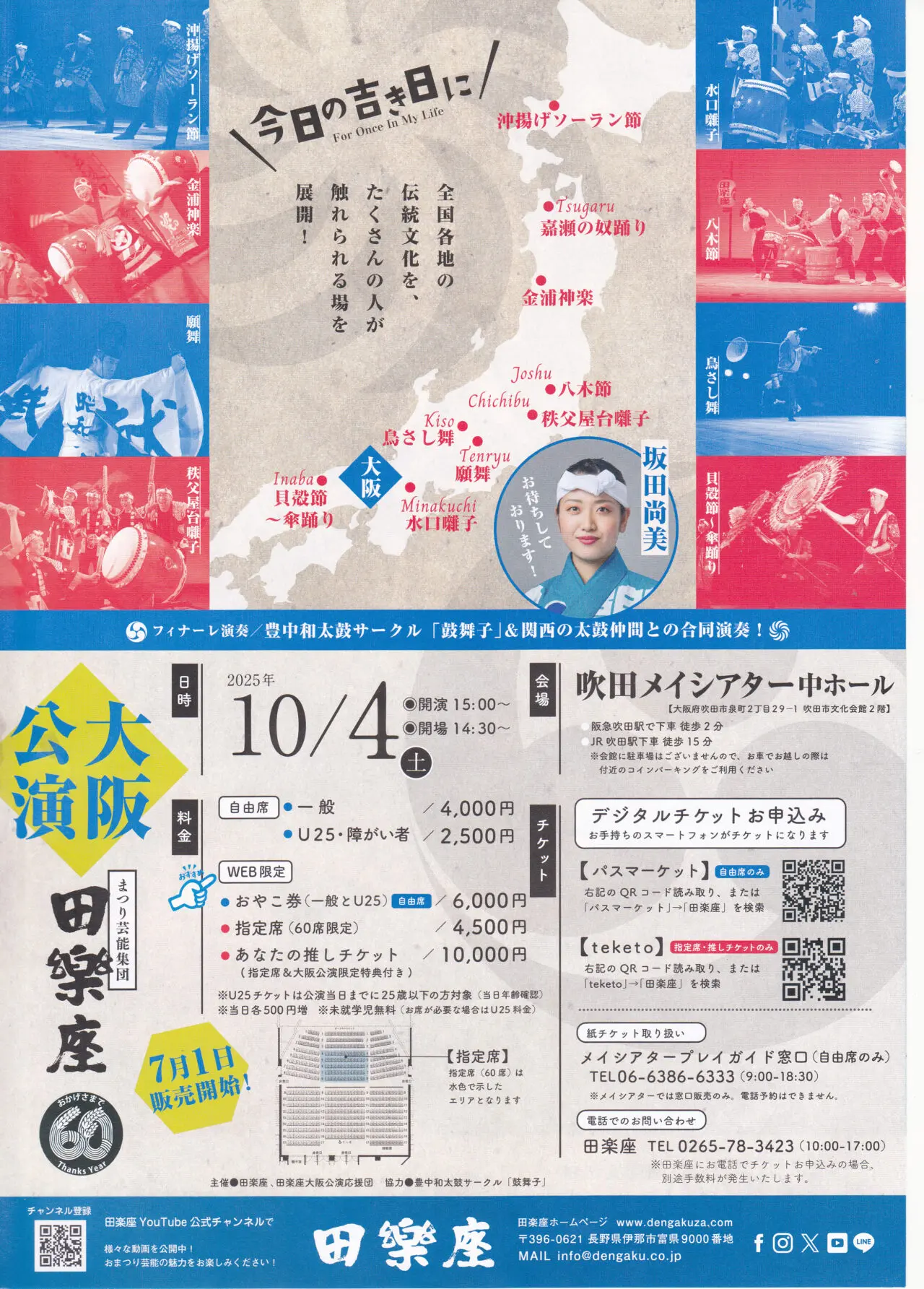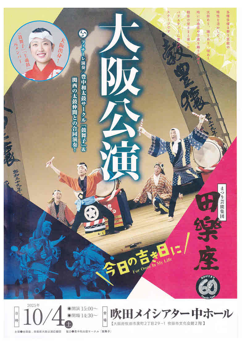 2025年10月4日(土)、メイシアターに まつり芸能集団「田楽座」がやってきます♪