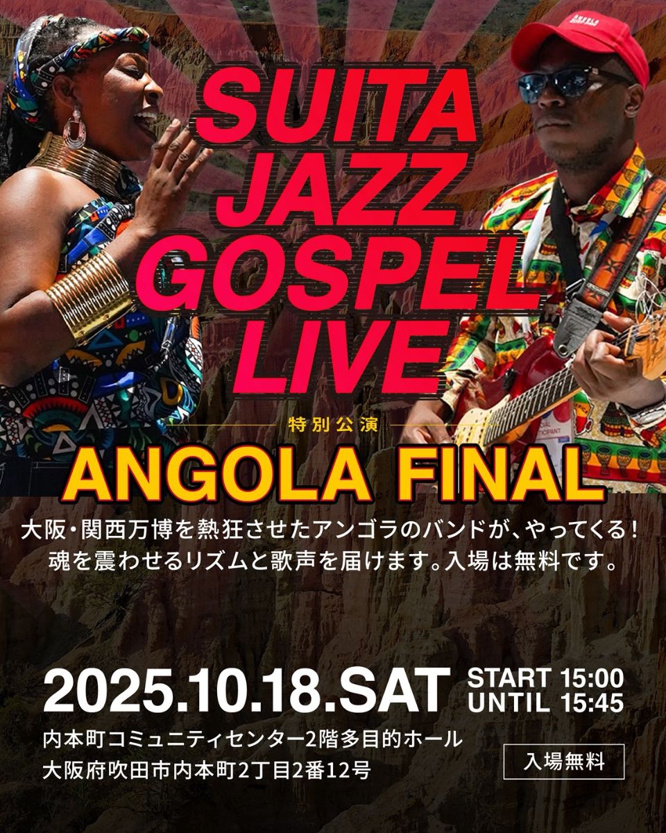 今日2025年10月18日(土)は、Expo2025アンゴラパビリオンのミュージシャンが急遽、吹田JazzGospelLive に登場!