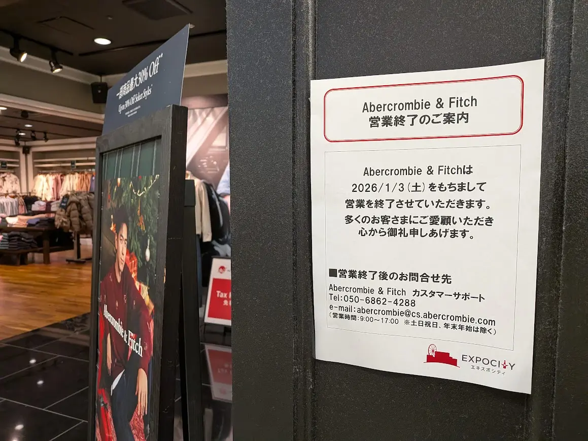 EXPOCITY内で営業していた「Abercrombie & Fitch」および「Hollister」の両店が、近く閉店することが判明しました。