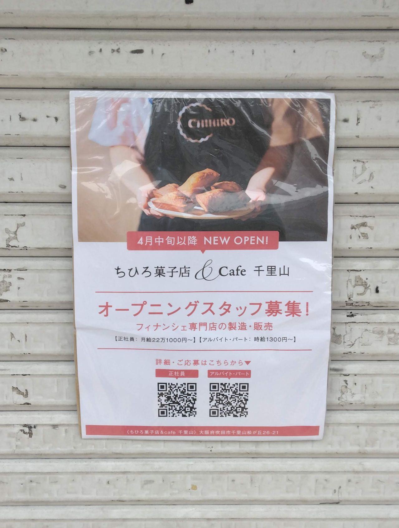 店名には「ちひろ菓子店&Cafe 千里山」と付いていることから、テイクアウトだけでなく、こだわりのフィナンシェをその場で楽しめるイートインスペースも期待できそうです。