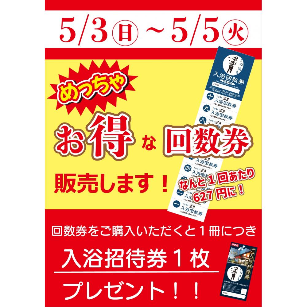 吹田エリアからもアクセスしやすい、阪急上新庄駅北口すぐの「天然温泉 満月」で、2026年5月3日(日)から5月5日(火)までの3日間限定で、入浴回数券の特売が実施されます。